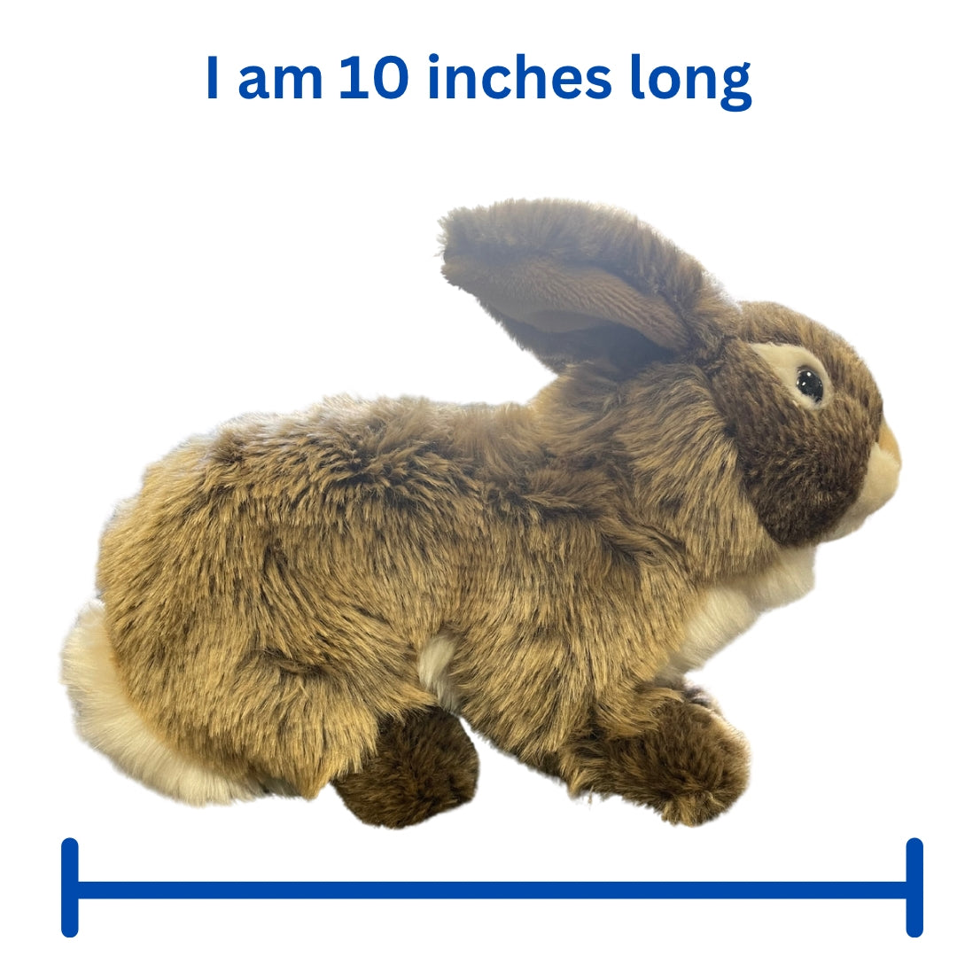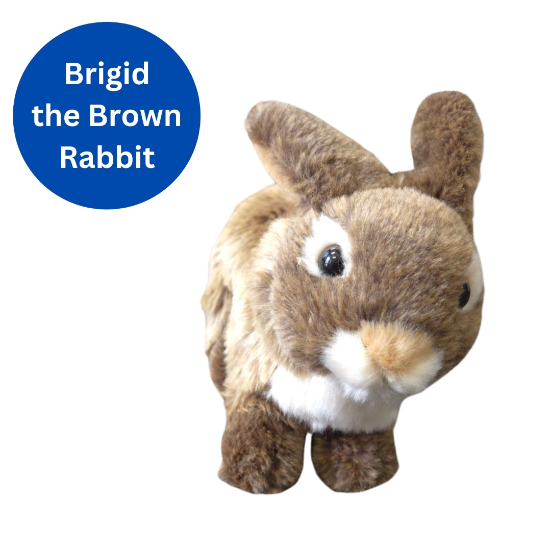 - Brigid the Brown Rabbit is 10 inches & made with soft plush fabric