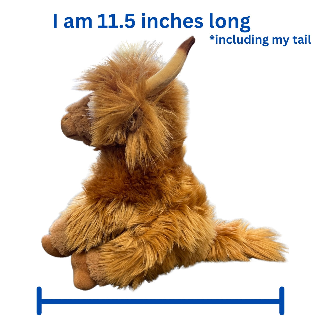 - Henley the Highland Cow is 11.5 inches & made with soft plush material